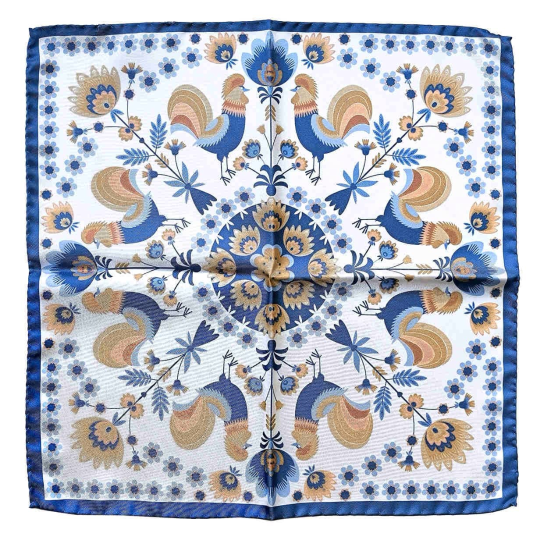 SILK POCHETTE- FLORAL MOTIFS – BLUE, WHITE, BEIGE COLOR